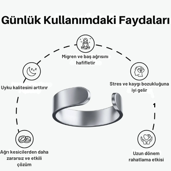Yüzüğün doğal akupresür etkisi, baş ağrılarında ve streste azalma yaratıyor. Çoğu kullanıcı günlük kullanımı kolay ve konforlu buluyor.