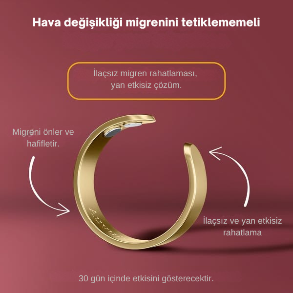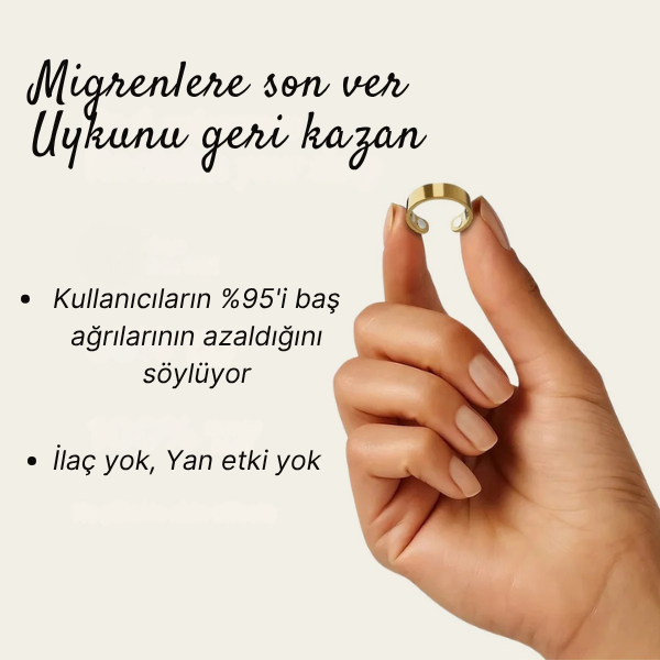 Zarif ve modern tasarımıyla stilinizi tamamlarken, parmak ucundaki özel akupresür noktalarına uyguladığı hafif baskı sayesinde migren ağrılarını doğal yoldan hafifletmeye yardımcı olur. Dolaşımı artırır, gerginliği azaltır ve baş ağrısının şiddetini düşürür. Hem aksesuar, hem rahatlama destekçisi.